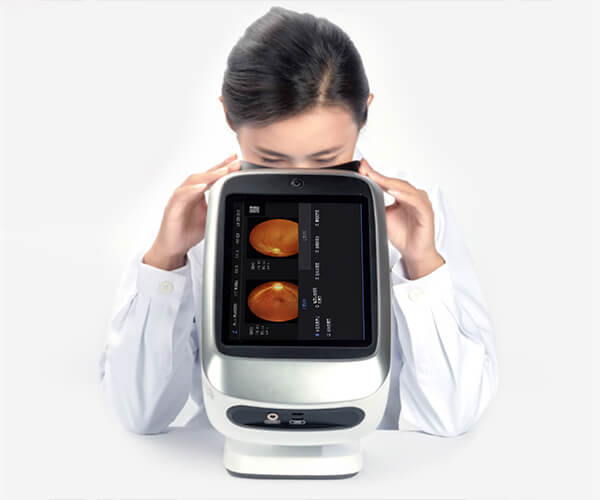 Eyerobo FC takes a colour fundus photo of both eyes in less than 60 seconds with one click of selfie without professionals. One-stop eye health management can be achieved. eyerobo FC is suitable for basic-level health institutions, vision centers, physical examination centers, etc.